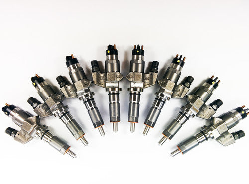 Duramax 01-04 LB7 Injector Set: Brand New injector set. SAC Nozzles flowing at 100 percent over with injector body modifications for added fuel delivery.